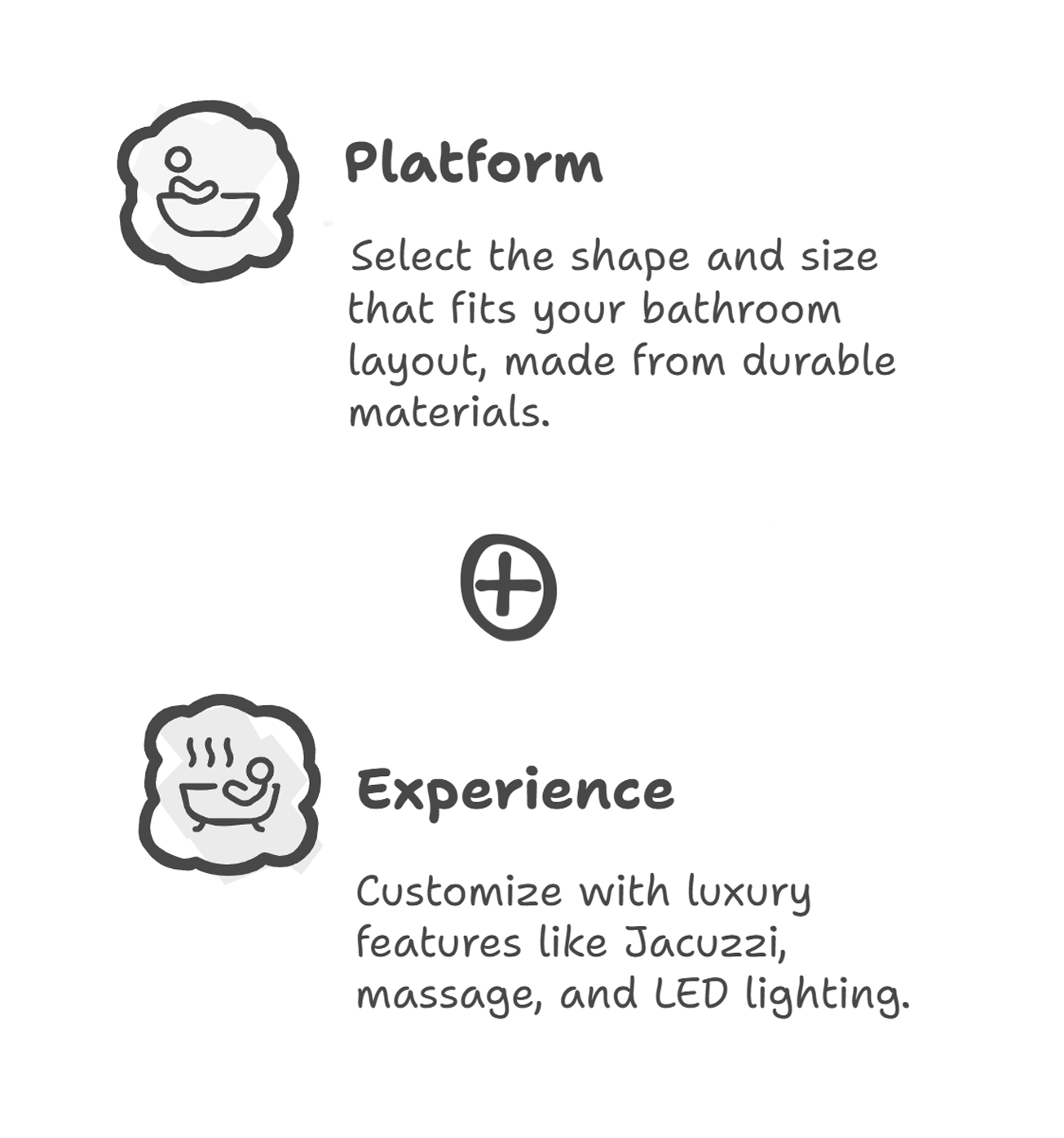 A small bathroom is not a barrier to comfort. With Madonna’s intelligently engineered bathtub platforms, you can enjoy a beautiful, relaxing spa experience — even in the tightest layouts.