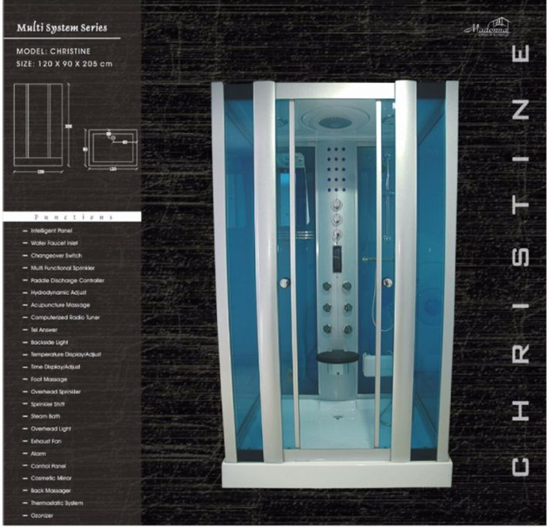 Get addicted to a superior bathing experience with this latest offering from Madonna -The Christine Multisystem. The striking modern look made with best-in-class materials gives your home another dimension of luxury. With adequate space for both solo and couple bath, Panache embraces you in comfort with its 12 concealed body jets, overhead shower, multi flow hand shower and a feather touch control panel that opens up an array of commands at your disposal.